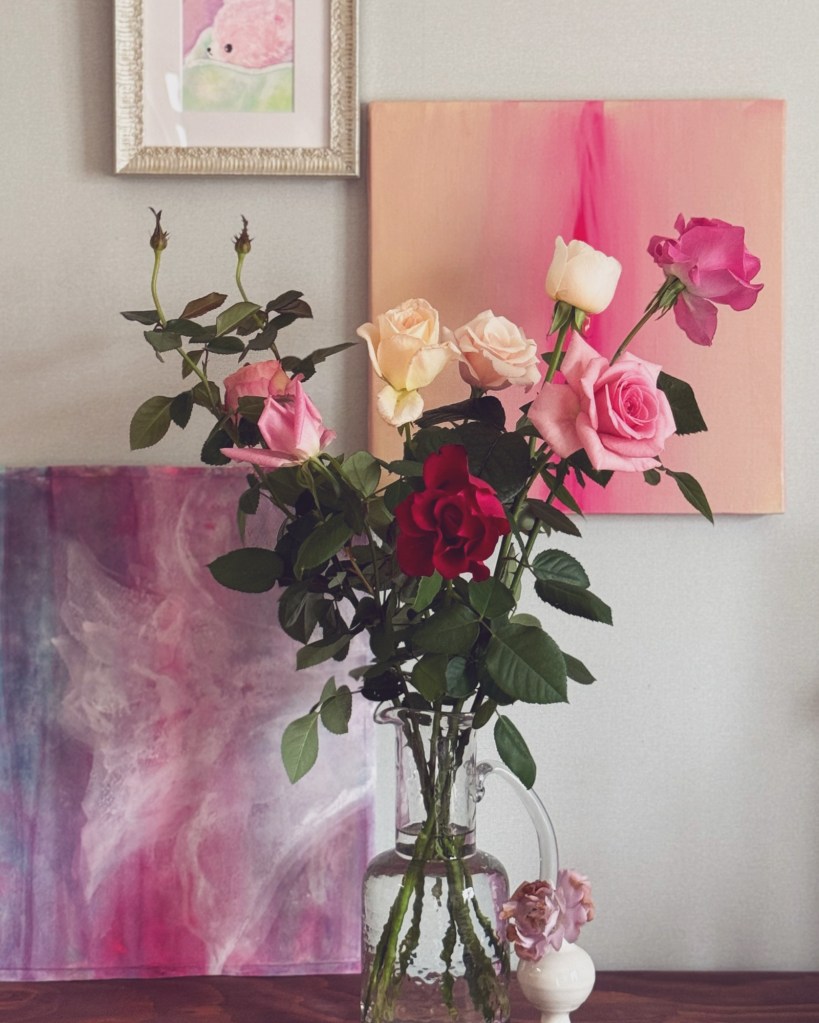 今日薔薇さんたちと自分の絵の組み合わせをみて、とてもとても愛おしくて、
