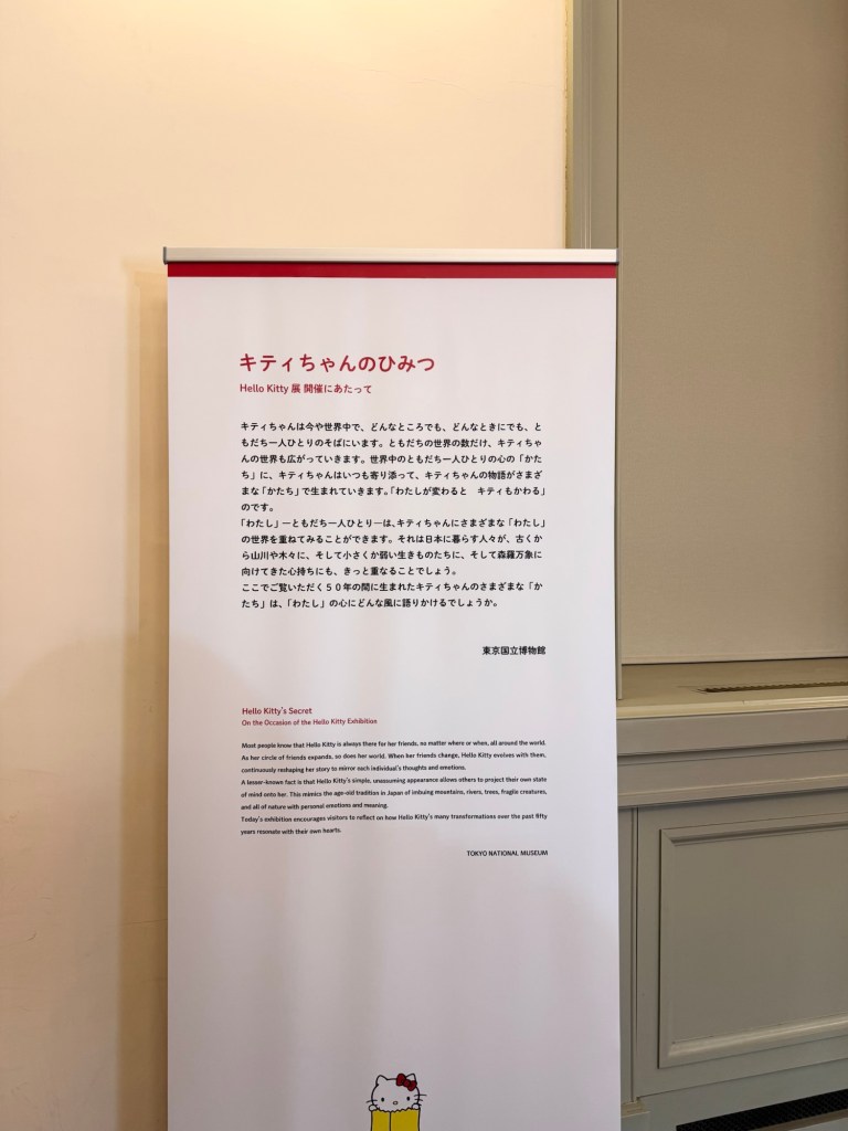 展示されているキティのアイテムたちはもちろんのこと、パネルに書かれている言葉が本当に素晴らしく、どなたが書かれたのかは存じ上げませんが拍手を送りたいです。