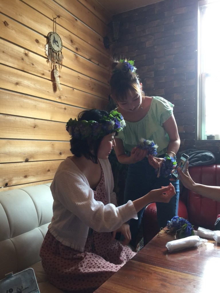 お花を編み込むレイづくりは意外にも初めて。