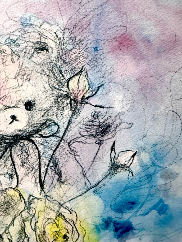 一見、線は鉛筆にみえるかもしれないのだけど、カランダッシュの色鉛筆をここぞとばかりに使っています。